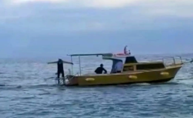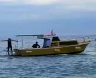 Kaleiçi Yat Limanı’ndan gezinti teknesiyle hareket eden 3 genç, Konyaaltı Sahili kıyı şeridine geldi. Kıyıda eğlenemeyen 3 genç, açtıkları ses sisteminden yükselen hareketli oyun havaları eşliğinde oynadı.