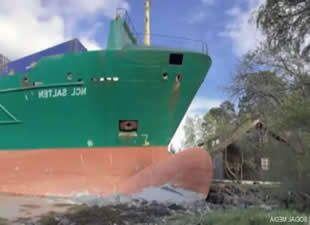 Norveç’in Trondheim kenti yakınlarındaki bir fiyortta yaşanan sıra dışı olayda, 135 metre uzunluğundaki “NCL Salten” adlı konteyner gemisi, karaya oturarak bir evin bahçesine kadar ilerledi. Olay anında evde bulunan Johan Hjelberg isimli ev sahibi ise olayı fark etmeden uyumaya devam etti.