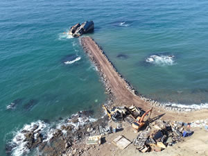 Şile’de 17 ay önce karaya oturan gemi parçalara ayrılarak denizden karaya çekiliyor. Parçalara ayrılarak karaya çekilen gemi havadan görüntülendi.