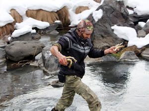 Bingöl'ün Devecik köyü halkı, kış aylarında eksi 20 derecede Devecik Şelalesi'ne giderek elle balık yakalıyor. Köyden yaklaşık 2 kilometre uzaklıkta olan Devecik Şelalesi'ne giden köylüler, giydikleri tulumlarla suyun içine girerek kayalar altında elle balık tutuyor. Bazı köylüler balık tutmayı zevk için yaparken, bazıları da geçimlerini topladıkları balıkları satarak yapıyor.