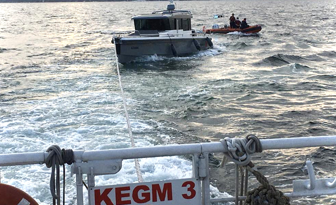 “Kartal açıklarında makine arızası nedeniyle sürüklenen ve içerisinde 8 kişi bulunan 11 metre boyundaki tekne, KEGM-3 botumuzca yedeklenerek Pendik Marina’ya emniyetle yanaştırıldı.”