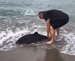 Mehmet Ersoy, yaptığı açıklamada, karaya vuran yunusun sırtında hafif yara aldığını gördüğünü ve bu yüzden yorgun kaldığını düşünerek tekrar denize bıraktığını ve yeniden canlanmasından dolayı mutlu olduğunu söyledi.