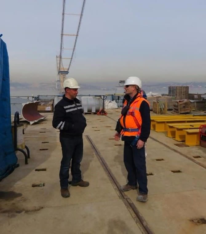 İstanbul-İzmir arasındaki yolun 3,5 saate inmesini sağlayacak 433 kilometre uzunluğundaki projenin şu ana kadar yüzde 57’lik bölümünün tamamlandığı belirtildi. Gebze-Orhangazi-İzmir otoyol projesinin en önemli bölümü olan İzmit Körfez Geçiş Köprüsü inşaatı tüm hızıyla sürüyor. Köprünün kara üzerindeki tabliyelerinin yerleştirilmesinden sonra geçtiğimiz Ocak ayında deniz üzerinden geçen tabliyelerin yerleştirilmesine başlandı. Şu ana kadar 5’i köprünün ortasında 3’ü de deniz üzerindeki ayaklarında olmak üzere 11 tabliye yerleştirilerek kaynak işleri tamamlandı. Her biri ortalama 300 ton olan tabliyelerin yerlerine yerleştirilmesiyle deniz üzerinde 275 metrelik bir yol tamamlanmış oldu. Öte yandan deniz yoluyla şantiyeye getirilen 2 tabliyenin ise köprünün Gebze tarafındaki yerlerine yerleştirilmesi için çalışmalar sürüyor. Çalışmaların hava şartları yüzünden sekteye uğramaması için hazırlanan dev kaynak çadırları da şantiyenin Gebze bölümünde hazır olarak bekletiliyor.