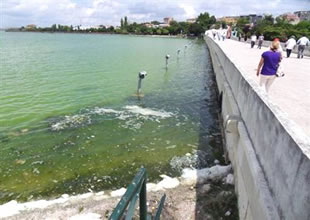 Gölün 16 metrekarelik yüzeyinde kimyasal atıklardan kaynaklanan ALG'ler gözle görülür bir hal aldı. Özellikle gölün havadan çekilen görüntülerinde bu yeşil kuşak olarak görünüyor.