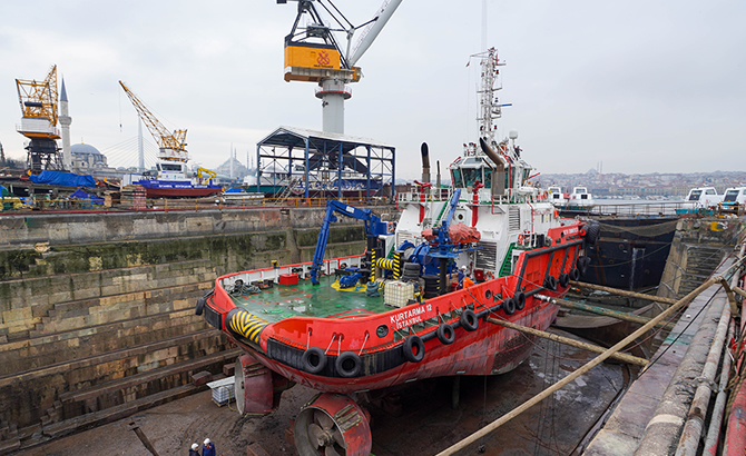 Haliç Tersanesi’nin 118.7 metre uzunluğunda, 20.10 metre genişliğinde ve 13.50 metre derinliğindeki 1 numaralı kuru havuzda bakım ve onarım işlemleri devam eden Kurtarma 9 ve Kurtarma 12 römorkörleri, yapılan işlemlerin ardından yeniden hizmete başlayacak.