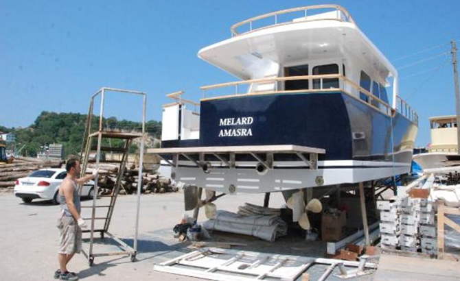 İstanbul'dan bir iş insanından alınan siparişle 2 yıl önce yapımına başlanan 15 metre uzunluğunda 4,5 metre genişliğinde kabin, 1 çocuk ve 1 misafir kamara olan lüks yatın yapımı tamamlanarak, tersanenin önüne kurulan düzenekle önümüzdeki günlerde denize indirilecek.
