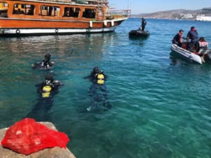 Sahil Güvenlik Komutanlığı'na bağlı dalgıçlar tarafından yaklaşık 2 saat süren temizlikte denizden, cam, plastik şişe, halı, çöp kutusu, sandalye, balıkçı malzemeleri, otomobil ile traktör lastiği çıkarıldı. Plajı da temizleyen ekiplere, bazı vatandaşlar destek verdi.
