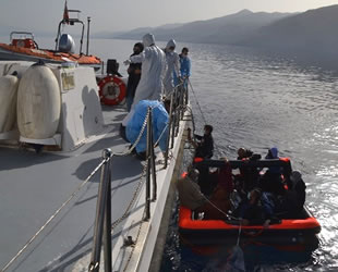 Görevlendirilen Sahil Güvenlik Botu tarafından Yunanistan unsurlarınca Türk Karasularına bırakılan can salı içerisindeki 13 düzensiz göçmen kurtarıldı.