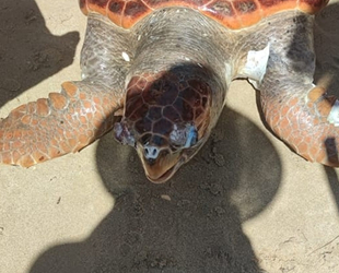 Kuşadası’nın dünyaca ünlü Kadınlar Plajı'na ölü deniz kaplumbağası sahile vurdu.