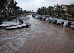 Aydın’ın Kuşadası ilçesinde yaşanan sağanak yağış, özellikle Davutlar ve Güzelçamlı mahallelerinde taşkınlara neden oldu. Bu durum, ilçede bir sel baskınına yol açtı. Sel sularının etkisiyle, Davutlar Balıkçı Barınağı’nda bağlı olan birçok tekne zarar gördü. Yoğun yağış, denize doğru akan sel sularının barınağa dolmasına ve yaklaşık 10 teknenin batmasına yol açtı. Ayrıca, çok sayıda tekne de su altında kaldı.