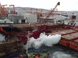 Türkiye Gemi İnşa Sanayicileri Birliği (GİSBİR) üye tersanelerinden Kuzey Star Tersanesi’nde havuz manevrası sırasında üzerinde tamir amacıyla 2 gemi bulunan yüzer havuzda bir çatlama meydana geldi.