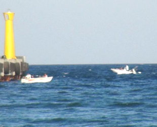 Denizde bir süre dalgalarla boğuşan 4 kişiyi farkeden bir başka teknedekiler, yardıma giderken durumu polise de bildirdi.