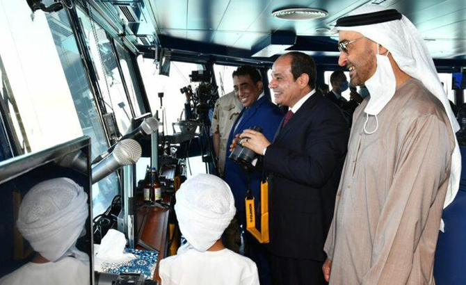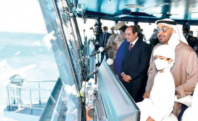 Aynı zamanda Sisi, 3 Temmuz Deniz Üssü’nde Bin Zayed ve Menfi’nin eşliğinde çok amaçlı el-Celale fırkateynini (FFG 1002) de denetledi.