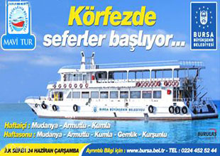 Bursa Büyükşehir Belediyesi, gemi turları ile yerli ve yabancı turist sayısını artırmak amacıyla Mudanya-Armutlu arasında çalışan Körfez seferlerini 24 Haziran Çarşamba günü başlatıyor.