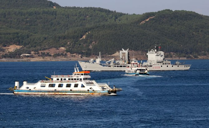 Marmara Denizi'nden Çanakkale Boğazı'na giriş yapan NATO'ya bağlı İtalyan savaş gemileri 'A 5329' borda numaralı 'Its Vesuvio' ile M 5557 borda numaralı 'Its Numana 9' ve İspanya savaş gemisi M32 borda numaralı 'Sella', Boğaz’ın manevra yapılması en güç noktası olan Nara Burnu'nu döndükten sonra Çanakkale önlerine ulaştı.