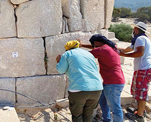 Ekipler 2 tonluk bloku da, yüzlerce yıl sonra yerinden böyle kaldırıldı.