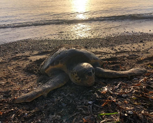 Muğla’nın Datça ilçesinde vatandaşlar sahilde ölmüş olabileceğini düşündükleri deniz kaplumbağası buldu.