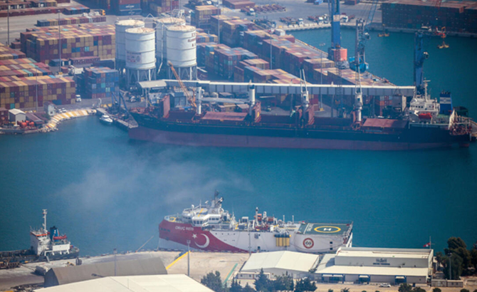 Yük gemileri arasında demirli bulunan Oruç Reis'in ikmalin ardından demir alarak Doğu Akdeniz'deki sismik araştırma faaliyetlerine devam edeceği öğrenildi.