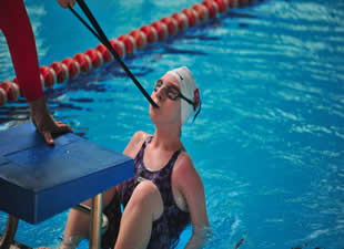 Startın verilmesi ile dişleriyle sıktığı aparatı bırakıp, yüzmeye başlayan Esra Yüce, 50 metre sırtüstünde de Türkiye şampiyonu olunca milli takıma katıldı.