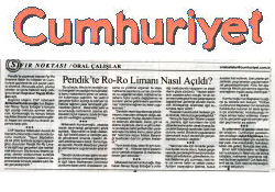 Cumhuriyet Yazarı Oral Çalışlar; 1 Mayıs 2005 tarihli köşe yazısında; Pendik'te yani açılan Ro-Ro limanı ile ilgili iddialara yer vermiş. Çalışlar'ın yazısı: