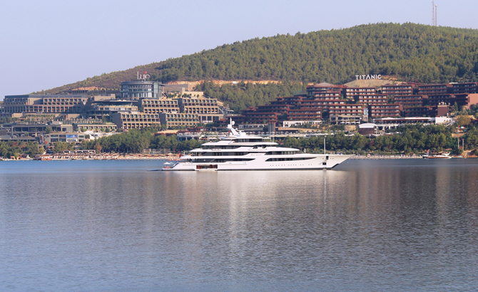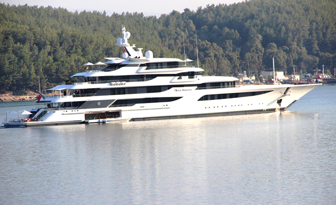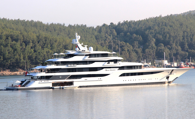 Dünyanın en büyük mega yatlarından biri olan, yaklaşık 800 milyon dolar değerindeki Royal Romance isimli lüks yat Bodrum’a demir attı.
