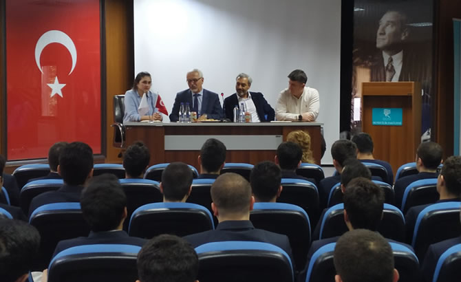 Konuşmacı olarak söz alan bir diğer konuk İnsan Kaynakları Müdür Yardımcısı Aslıhan Başar, kendisinin Turgut Kıran Denizcilik Fakültesi mezunu olduğunu ve burada olmaktan çok gurur duyduğunu belirtti.
