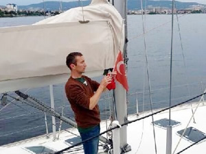 Türk milletinin rengini şehit kanlarından alan ay yıldızlı bayrağa önem verdiğini anlatan Üstteğmen Orhan Öğrenci, yat personeline Türk karasularında seyrederken bu konuya hassasiyet göstermelerini istedi. Hediye edilen Türk bayrağını seren direğine çeken yat personeli, yoluna devam etti.