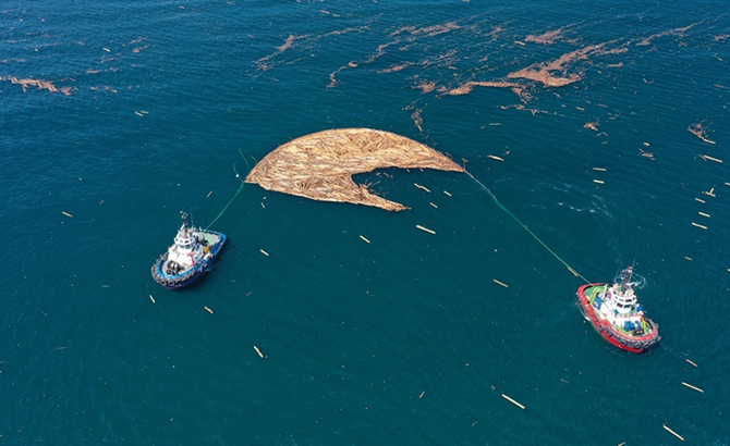 Söz konusu donanımın deniz yüzeyini taraması için 4 römorkör tahsis edildi. Toplanan tomruk ve ağaç malzemeleri Orman Bölge İşletmesine ait toplama noktalarına getirilerek karaya çıkarılıyor.