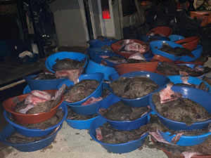Ekiplerin, teknede ve araçta yaptığı incelemede, kaçak avlanan 9 ton ağırlığındaki 2 bin kalkan balığı ele geçirildi.