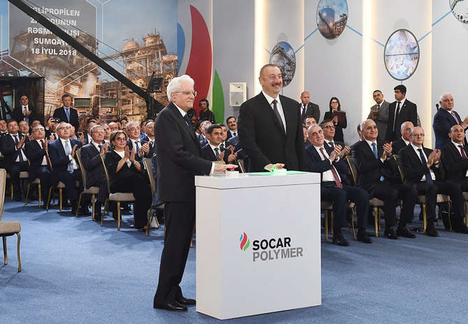Azerbaycan'da ülkedeki türünün tek örneği olan ve uzun zamandır beklenen polipropilen fabrikasının açılışı İtalyan Cumhurbaşkanı Sergio Mattarella'nın Hazar ülkesine yaptığı ilk ziyaret sırasında gerçekleşti. SOCAR Polymer projesi kapsamında bir polipropilen fabrikasının finansman modelini örnek aldı. SOCAR Başkanı Rovnag Abdullayev, risklerin azaltılması için bu kararın alındığını belirtti.