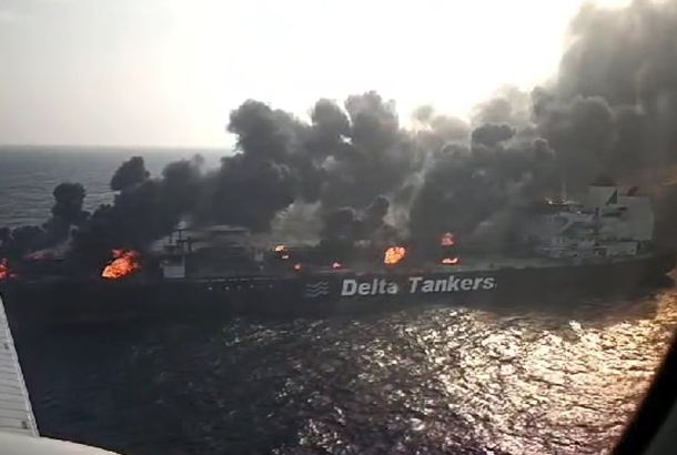 Yunanlılara ait petrol yüklü tanker Sounion, Kızıldeniz'in güneyinde Husi militanları tarafından hedef alındı. Mürettebat ertesi gün tahliye edildi. Husiler daha sonra gemiye çıkarak ana güvertede ve köprüde daha fazla patlayıcı patlattı. Bu da 19 yangına yol açtı ve geminin kargo tanklarının üst kısımlarında delikler açtı. Bu fotoğraf, geçen ay Splash'ın 2024 fotoğrafı seçildi .