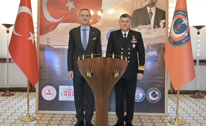 "İMEAK Deniz Ticaret Odası Yönetim Kurulu Başkanımız Tamer Kıran, 12 Kasım 2024 Salı günü, Sahil Güvenlik Marmara ve Boğazlar Bölge Komutanlığına yeni atanan Tuğamiral Serkan Tezel’i ziyaret etti.