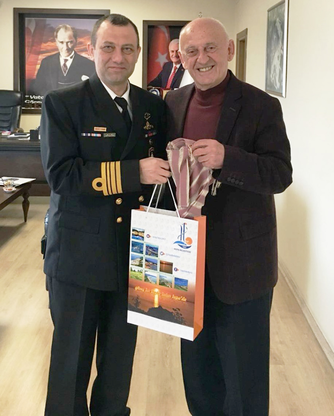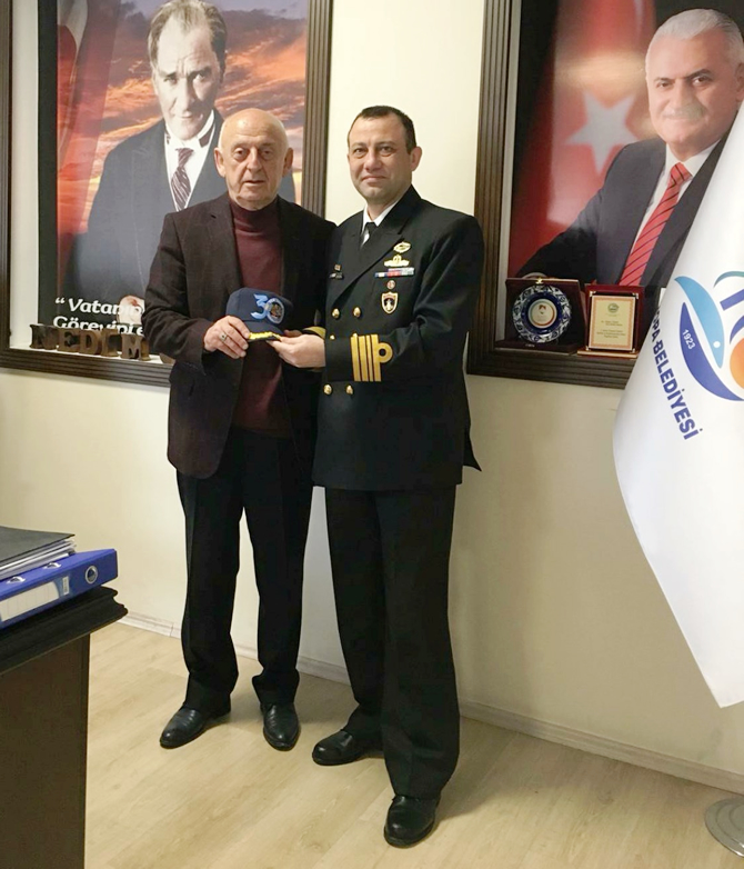 TCG YAVUZ F-240 Savaş Gemisi Komutanı Deniz Yarbay Timuçin Halil Yıldıran ve heyeti Hopa Belediye Başkanı Nedim Cihan’ı makamında ziyaret etti.