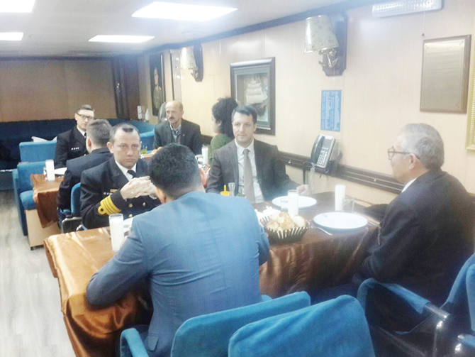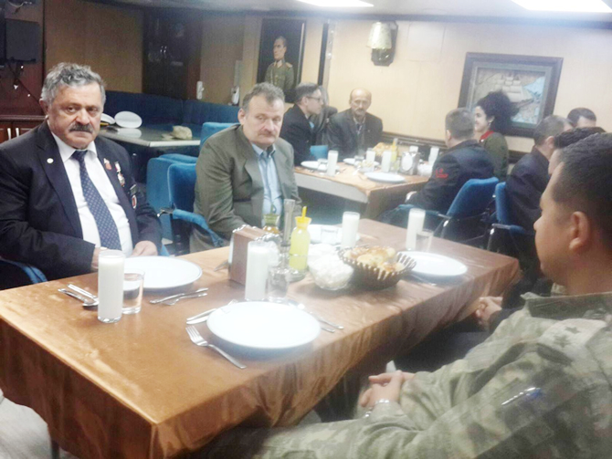 Kaymakam Abdurrezzak Canpolat, Kemalpaşa Kaymakamı Mehmet Kemal Akpınar, Garnizon Komutanı Üsteğmen Erkan Erol, Sahil Güvenlik Komutanı Üsteğmen Umut Özdemir ve Hopa Gaziler Derneği Başkanı Şükrü Akbıyık ve şehit yakınları ve gazilerle beraber, TCG YAVUZ (F-240) gemisinde öğle yemeğinde bir araya geldiler. Kaymakam Canpolat ve Protokol üyeleri gemiyi gezdi. Ziyarette askeri personel gemi hakkında bilgi verdi.