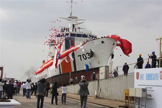 Milli Savunma Bakanlığı’nın Sahil Güvenlik Komutanlığı’nın ihtiyacı çerçevesinde açtığı 4 adet Sahil Güvenlik Arama Kurtarma Gemisi Projesi’nin inşa ihalesini kazanarak, özel sektör tarihindeki en büyük muharip gemi projesini üstlenen ilk tersane olan RMK Marine, proje kapsamında inşa ettiği üçüncü gemi TCSG Umut’u düzenlenen törenle denize indirdi. RMK Marine proje çerçevesinde 9 Haziran 2010’da ilk gemi TCSG Dost’u ve ardından da 17 Aralık 2010’da ikinci gemi olan TCSG Güven’i denize indirmişti.