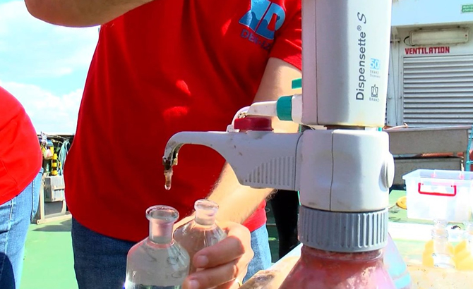 Gemide; ıslak laboratuvar, kuru laboratuvar, biyoloji laboratuvarı, ısı kontrollü laboratuvar ve bilgisayar laboratuvarı bulunuyor. Tüm işlem CTD isimli cihaz ile gerçekleşiyor. Cihazın üzerinde toplam 12 şişe var. Normalde 3 bin metre derine kadar inebiliyor. Her bir şişe farklı derinliklerden su numunesi alıyor ve güverteye çıkıyor. Numunelerin analizi de gemideki laboratuvarda yapılıyor.