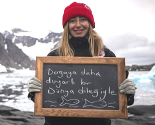 Sefere katılan bilim insanları, Antarktika'daki çalışmalarının ardından dünyaya mesajlarını küçük bir kara tahtaya yazarak verirken, yazılarda bilim, sevgi ve çevresel duyarlılık vurguları öne çıktı.