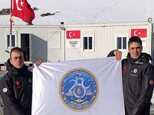 Antarktika Bilim Seferi'nde, "Deniz Harp Okulunun 250'nci Kuruluş Yıl Dönümü" logosu da sergilendi.