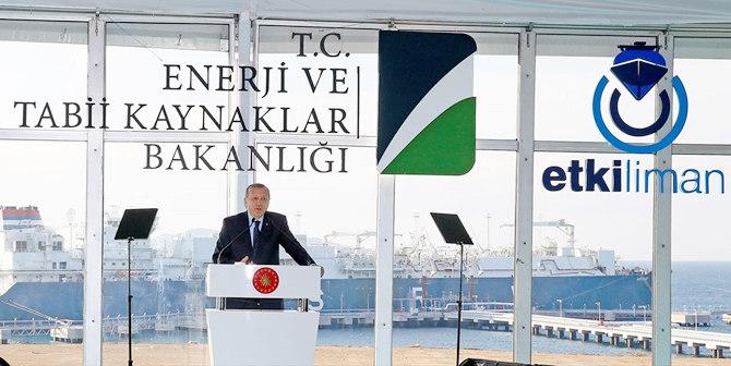 Başbakan Binali Yıldırım'ın ardından konuşan Cumhurbaşkanı Recep Tayyip Erdoğan, terminalin 6 ay gibi kısa bir sürede hizmete alınmasının oldukça önemli olduğunu vurgulayarak, 'Projenin şehrimize ülkemize firmamıza hayırlı olmasını diliyorum. Türkiye büyüdükçe enerji talebi de artacaktır. Son 10 yılda büyüme hızımızla enerji tüketim oranımız aşağı yukarı aynı oranda artmıştır. Doğalgazda maalesef dışa bağımlıyız. Doğalgaz tedarikimiz de kaynak çeşitliliğine gitmemiz şart.' dedi.