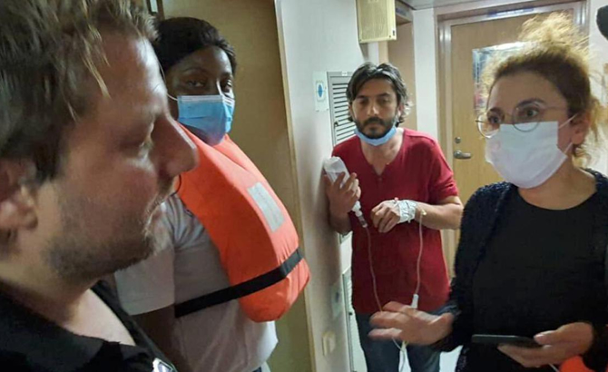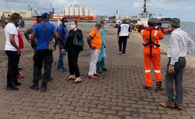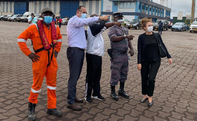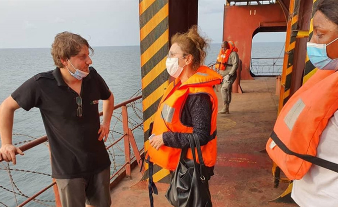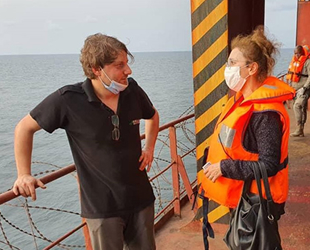 Türkiye'nin Librevil Büyükelçisi Nilüfer Erdem Kaygısız, Twitter hesabından Gabon'un Gentil Limanı'na demirleyen geminin mürettebatıyla fotoğraf paylaştı.