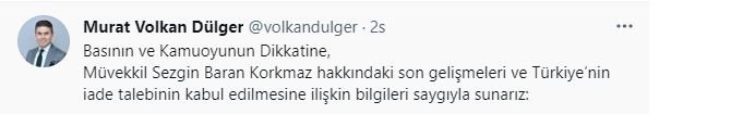 Korkmaz'ın avukatı Murat Volkan Dülger, müvekkili hakkında devam eden ABD'ye iade talebinin incelenmesinin ardından durumun netleşeceğini söyledi.