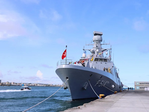 Türkiye Savunma Bakanlığına ait geminin karşılama törenine, Somali Cumhurbaşkanı Hasan Şeyh Mahmud, Somalili bakanlar ve Türkiye'nin Mogadişu Büyükelçisi Alper Aktaş katıldı.