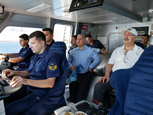 Valiliğin açıklamasına göre, Köşger, Yumurtalık ve Karataş ilçelerinin sahillerini denizden inceledi.