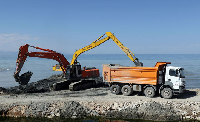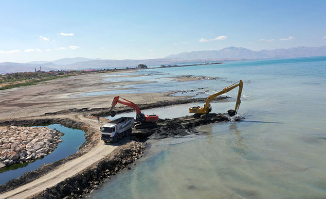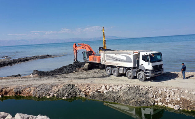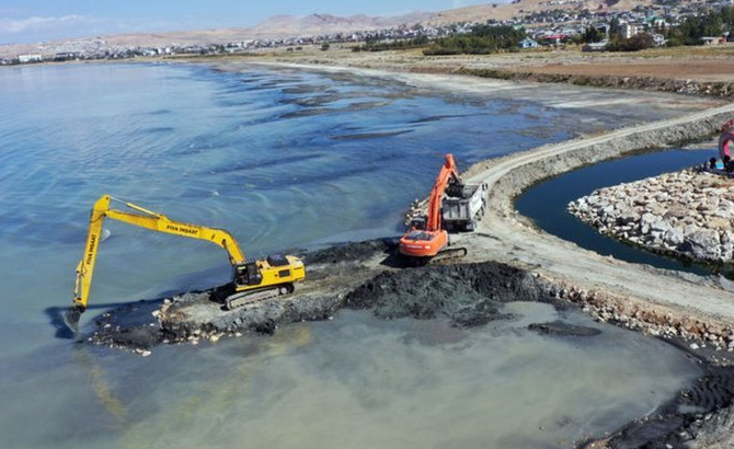 Van Gölü Havzası Koruma Eylem Planı' kapsamında proje hazırlayan belediye, daha önce atık suların arıtılmadan göle akıtılması nedeniyle zeminde oluşan balçığın temizlenmesi için çalışmalara başladı. İskele sahilinde 20 kamyon ve 3 ekskavatör ile yürütülen çalışmalarla gölün dibindeki çamurlar temizleniyor.