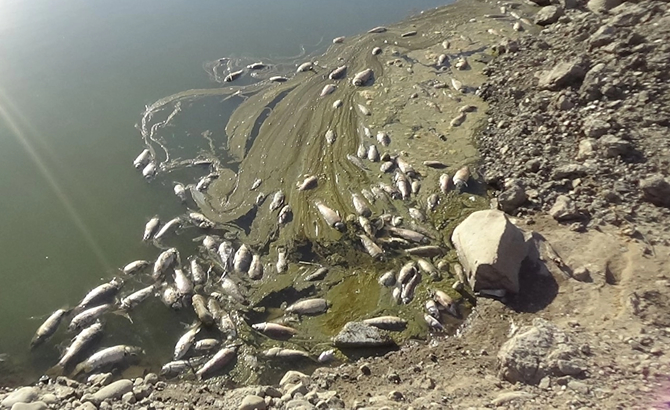 Son günlerde Van Gölü havzasından kuraklık ve baraj göllerinden balık ölümü haberleri gelmeye başladığının altını çizen Dr. Öğretim Üyesi Mustafa Akkuş, "İçerisinde bulunduğumuz Eylül ayı itibari ile beraber bu bölgede özellikle çok ciddi ötrofikasyon hadisesinin olduğunu görüyoruz. Yani suya azot fosfat girdisi ile beraber buradaki mikro algler, ipliksi algler çoğalaraktan buradaki balıkların solungaçları çıkıyor ve burada balık ölümleri gerçekleşiyor. Şu anda bulunmuş olduğumuzu Koçköprü Baraj Gölü'nde tipik bir ötrofikasyon hadisesi yaşıyoruz. Göl tamamen neredeyse koyu yeşil bir hale dönmüş, suyu oldukça bulanık. Oksijen seviyesi haliyle düşüyor ve binlerce balığın öldüğüne şahitlik ediyoruz. Peki geçen yıllarda bunu yamadık ta bu sene neden yaşıyoruz. Bu sene kuraklıktan dolayı baraj göllerinde su seviyelerinde inanılmaz bir düşüş meydana geldi. Belki de tarihinde hiç olmadığı kadar baraj göllerinde ki su seviyesi alçaldı. Önümüzdeki aylarda meydana gelecek olan yağmur yağışları ile beraber umuyoruz ki tekrardan barajlarda su girdi soracak su seviyeleri yükselecek ve balık ölümlerinin sona erdiğine şahitlik edeceğiz" dedi.