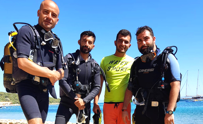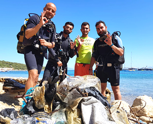 Bodrum’da deniz dibi dalış hizmeti veren Muğla SAT Dalış Akademisi de Yalıçiftlik Pabuç Burnu’nda deniz dibi temizlik çalışması gerçekleştirdi.