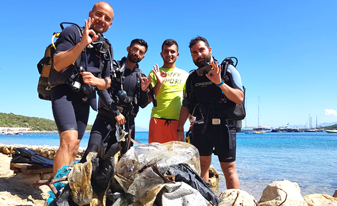 Bölgede deniz dibi dalış hizmeti veren okullarda görevli dalış ekipleri sezon öncesi deniz dibi temizliği yaparken, denizden çıkanlar hayrete düşürüyor. Özellikle deniz canlılarının yaşamını olumsuz etkileyen naylon poşetler ağırlıklı olarak gelişi güzel denize atılırken, dalış ekipleri deniz dibi temizlik çalışması ile bu çöpleri topluyor.