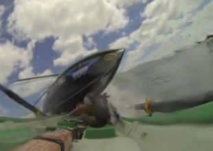 Piha Beach Yeni Zelanda Sörf Tekne Serisi yarışlarında dev bir dalganın etkisiyle kontrolden çıkan bir tekne Orewa Thunder'in ekibinin yer aldığı kanonun üzerine hızla gitmeye başladı.