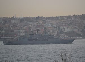 Marmara Denizi'ne açılan Türk Donanması'na ait F240 borda numaralı Yavuz Fırkateyni, sabah saat 11.00 sularında İstanbul Boğazı'ndan geçti.