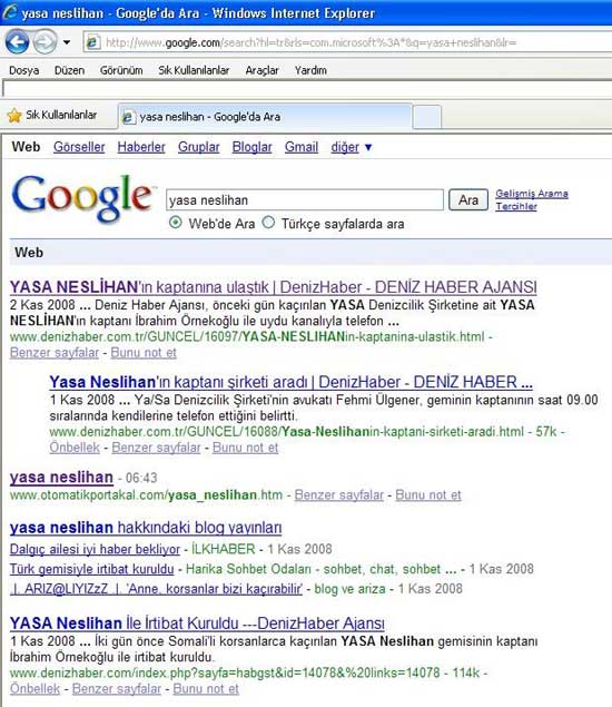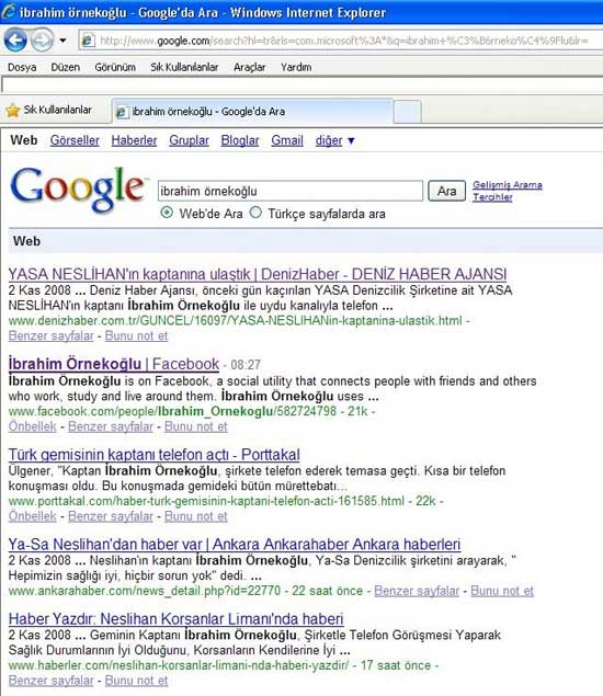 MOZİLLA VE EXPLORER'DA YAPILAN ARAMA